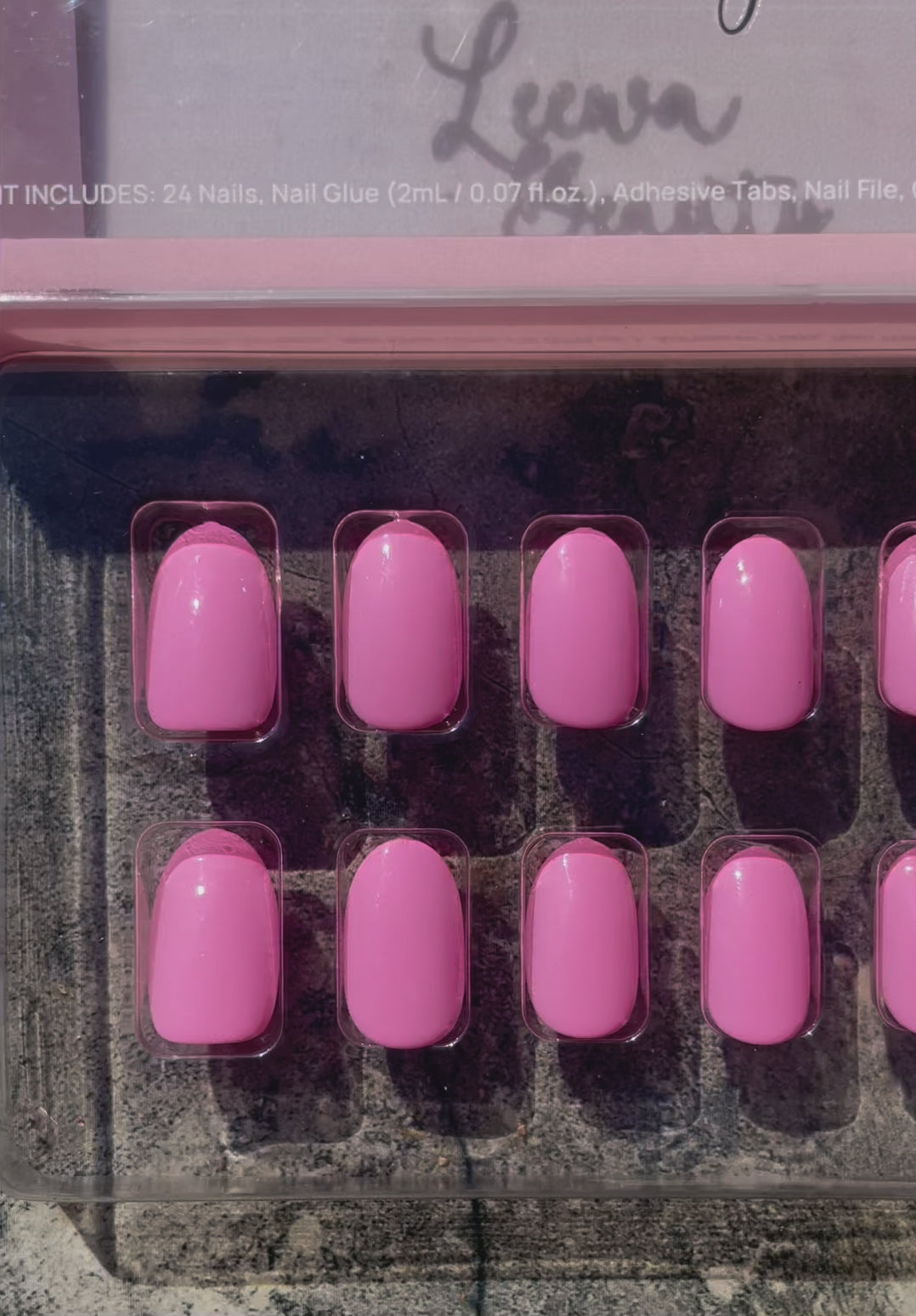 "Indulge in the luxurious ease of our Pretty in Pink Round soft gel reusable press-on nails!" These nails are waterproof, adjustable, and flexible, making it a breeze to flaunt a gorgeous solid pink shade all day long. These nails are the perfect accessory to elevate any chic ensemble.